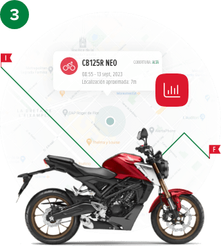 ¡Bienvenido/a a bordo! Ahora que ya tienes tu moto bajo control, escucha todo lo que tiene que decirte: alertas de movimiento, estadísticas de uso, exporta y genera informes de rutas, recordatorio de revisiones… ¡Todo lo necesario para que no tengas que preocuparte nunca más por tu moto!